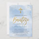 Bautizo Invitation moderne, élégant garçon avec arrière - plan d'aquarelle bleue, croix d'or élégante, script de typographie Baptême en lettrage tendance. Pour modifier ce modèle, cliquez sur customiser plus loin.