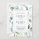 Ce faire-part de mariage est composé d'eucalyptus peint à l'aquarelle et de feuilles verts botaniques avec cadre rectangle doré.