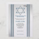 Etoile de David Bar Mitzvah invitation accentuée en bleu et argent. Customisez le texte à la convenance.