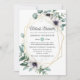 Invitation à la douche nuptiale longue distance virtuelle avec végétation eucalyptus géométrique et fleurs de pavot dans les tons pastel avec un cadre géométrique or et un rinçage à l'aquarelle de menthe inverse.
