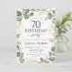 Elégante invitation botanique 70ème anniversaire de fête. Design classique avec aquarelle peinte à la main vert eucalyptus feuillage et police de script. Invitations Zazzle imprimées ou téléchargement instantané modèle imprimable numérique. Personnalisez avec vos propres détails. Message-moi si vous avez besoin d'une personnalisation plus poussée.