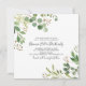 Cette simple faire-part de mariage carré à fleurs brunes d'eucalyptus conviendra parfaitement à un mariage de verdure. Le design présente artistiquement peint à la main de beaux feuilles vert eucalyptus arrangés en formes géométriques, inspirant la beauté naturelle.