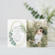 Bordure dorée avec feuilles d'eucalyptus aquarelle et une photo sur le devant avec une autre au dos