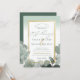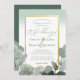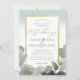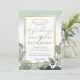 Modèle faire-part de mariage Eucalyptus. Eucalyptus, sauge, vert émeraude défraîchi, feuillage bleu poussiéreux avec cadre élégant, moderne, simple d'or en feuille d'or et script de calligraphie simple et élégant. (Les feuilles eucalyptus dans le design sont des photos manipulées). Ce design mariage fait partie de ma collection Mariage Eucalyptus qui comprend : faire-part de mariage, Save the Date designs, Merci, RSVP, designs, faveurs personnalisées et autres papeterie mariage et dîner mariage, articles de fête. (Vous pouvez trouver l'ensemble parmi mes Collections.)