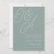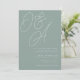 Un magnifique faire-part de mariage monographique à base de typographie avec vos initiales en lettres de script surdimensionnées en haut, en tons tonaux pour un effet filigrane. Personnalisez avec vos détails de mariage dans les lettres serif classiques alignées en bas à droite. Notre colorway Eucalyptus est un élégant mélange de vert poussiéreux, avec des lettres vert pâle et blanc sur un arrière - plan vert sage.