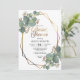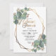 Voici une belle invitation à la douche nuptiale avec cadre d'or géométrique eucalyptus