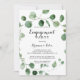 Cette invitation à la fête d'engagement calligraphie moderne eucalyptus est parfaite pour un événement simple. L'aménagement comprend des branches et des feuilles d'eucalyptus botaniques élégants dessinés à la main dans des aquarelles.