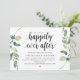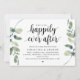 Carton d'invitation thématique Eucalyptus de verdure rustique moderne, écriture noire (avec titre de carte: Avant Heureux à Tout Jamais). Il est parfait pour votre fête de célébration de dîner de répétition de mariage, avant votre meilleur jour. Ajoutez vos détails dans la même police / lettrage noir.
