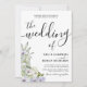 C'est un joli et rustique "le mariage de" faire-part de mariage de calligraphie, avec eucalyptus et fleurs violettes. Facile de customiser le texte pour créer quelque chose de vraiment unique.