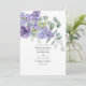 Faire-part de mariage tendance avec des feuilles d'eucalyptus et de succulents plantes mélangés avec des fleurs aux accents de lilas pastel, violet et violet. Idéal pour un thème ou un mariage de jardin.