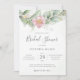 Belle invitation à la douche nuptiale avec l'eucalyptus couleur rose florale et feuilles or avec calligraphie manuscrite moderne.