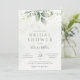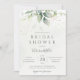 Belle invitation de mariage avec eucalyptus aquarelle et feuilles dorées.