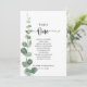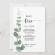 Ce tableau vert d'eucalyptus numéro 1 est parfait pour un mariage simple. L'aménagement comprend des branches et des feuilles d'eucalyptus botaniques élégants dessinés à la main dans des aquarelles. La carte imprime recto verso (recto verso)