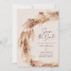 Invitation de mariage moderne bohème naturelle avec herbe de pampas à retenir. Texte élégant et script saisissant avec feuillage botanique tendance dans une palette de couleurs contemporaine sarcelle, noir, terre cuite et beige naturel.