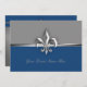 Ces élégantes invitations aux évènements Argent et Fleur de Lis sont ornées d'une imitation métal argenté, symbole Fleur de Lis sur un arrière - plan bleu argenté et foncé. Personnalisez-vous avec votre entreprise, votre cravate noire ou toute autre information spéciale sur l'événement à l'arrière, qui présente une fleur de Lis argentée sur une bande bleue et un arrière - plan dégradé qui imite un projecteur de losange.
