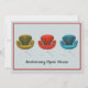 Montré ici pour un cinquantième anniversaire de mariage, cette invitation contemporaine moderne avec de rétros chaises vintages impressionnera vos invités avec leur style spécial. Personnalisez-la pour votre propre événement mémorable et ajoutez vos propres détails faits sur commande sur le dos. Le vert, le rouge et la moitié du siècle bleue turquoise Eames ont inspiré des chaises sur l'arrière - plan gris doux avec l'équilibre rouge d'accent.