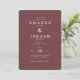 This elegant wedding invitation features a sophisticated maroon background with clean, classic typography that exudes timeless charm. The design is simple yet refined, focusing on the essential details in an understated manner. Perfect for couples who appreciate a modern and minimalist aesthetic, this invitation sets a warm and inviting tone for their special day. With ample space for personalization, it seamlessly blends functionality with style, making it ideal for those looking to create a memorable first impression at their celebration.