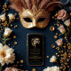 Let yourself be enchanted by the mystery and elegance of these exquisite masquerade ball invitation cards. Their sophisticated design features ornate masks with gold effect accents, evoking the luxury and opulence of an unforgettable night. The harmonious composition of dark tones and golden highlights creates an atmosphere of glamour and sophistication, perfect for an exclusive event.