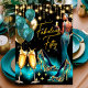 Invitation Fabuleux Anniversaire Turquoise Bleu Robe Champagn