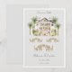 L'annonce de sauvegarde de date comprend une villa de style mansion entourée de palmiers sur un fond gris.