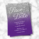 Faire-part de mariage avec dégradé de violet et paillettes argentées glamour.
