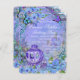 Invitation à la fête d'anniversaire de princesse avec de jolies fleurs violettes et bleues turquoises, papillons et tourbillons sur un arrière - plan floral glittery avec belle princesse royale chariot. Vous pouvez facilement customiser cette jolie invitation de fête d'anniversaire violet et bleu turquoise pour votre événement en ajoutant vos détails dans le style et la couleur de police, et le libellé de votre choix. Il s'agit d'un design imprimé sans vrais rubans, arcs, bijoux, parties scintillant, etc.