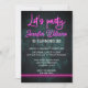 Invitation amusante et cool avec un néon rose vif pour les fêtards. Typographie rose, blanche et feuilles de feuillage vert sombre.