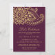 Cette carte d'invitation Faisons la fête avec un paisley indien doré est parfaite pour un événement élégant. Le design mehndi présente un beau mandala floral de henné et un motif paisley sur un fond bordeaux. Cette invitation peut être personnalisée pour une soirée de fiançailles, une soirée d'enterrement de vie de jeune fille, ou tout autre événement ou fête.