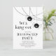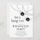 Cette amusante invitation présente une illustration en noir et blanc d'araignées suspendues à une toile d'araignée. Les mots "Let's Hang Out" sont écrits dans une jolie police éffrayante. C'est la façon idéale d'ajouter une touche de plaisir d'Halloween à votre fête et de faire savoir à vos invités qu'ils sont dans pour un bon moment effrayant. Ce sera certainement un succès pour tous ceux qui le reçoivent.
