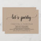 Belle invitation Faisons la fête, carte d'annonce / invitation de mariage en fuite, en Kraft Brun Rustique, design simple et minimaliste. C'est parfait pour votre réception de mariage et la fête de célébration après le mariage. Ajoutez vos détails dans la même police / lettrage.
