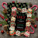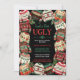 L'invitation "Let's Get Ugly" Christmas Sweater Party comporte un arrière - plan noir audacieux à l'avant et à l'arrière. Sur le devant, l'invitation est encadrée d'un collage ludique de laides pulls de Noël, tous en rouge, vert et blanc éclatant. Les chandails offrent une variété de designs festifs et décalés, capturant l'esprit amusant et excentrique de la saison des fêtes. La légende de l'invitation, "Let's Get Ugly", est affichée en évidence dans le cadre dans une paire de polices festives et attrayantes. Le dos de l'invitation poursuit le thème des fêtes avec un motif répété de feuilles saints et de baies. Le motif, rendu dans les couleurs traditionnelles de Noël, ajoute une touche subtile mais festive à l'arrière - plan noir, créant une finale cohésive et élégante.