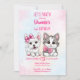 Pawty white and rose mignon chiot blanc avec arc rose et chaton blanc gris invitation Fête d'anniversaire modèle instantané téléchargement numérique chiot chatons animaux de compagnie thème fête d'anniversaire
