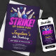 Préparez-vous à vous amuser à ce bash d'anniversaire ! Cette invitation vibrante au thème du bowling est parfaite pour fêter un anniversaire avec un bang. Doté d'une épingle de bowling colorée et d'un design à billes, cette invitation fera certainement plaisir à vos invités pour une nuit de grèves et de pièces de rechange. Customisez-le avec le nom de votre enfant, son âge et les détails de la fête pour en faire le leur.