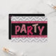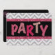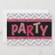 Scintillez et brillez l'invitation personnalisable de fête d'anniversaire avec des lettres de regard d'étincelle de diverses couleurs de rose qui définissent la PARTIE, l'argent et les rayures blanches de chevron, et de secteurs que vous pouvez facilement customiser avec votre information de fête d'anniversaire.
