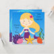 Vous pouvez facilement customiser nos invitations blondes d'anniversaire de sirène avant la commande avec les détails du nom et de la partie de votre enfant ! Une sirène d'une chevelure blonde mignonne, une étoile de mer, une algue, et une eau bleue lumineuse font à ce joli invitation de thème de sirène un coup !