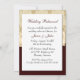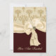 Invitation élégante de dîner de répétition de mariage, faite dans le brun foncé, le blanc, et les couleurs de ton crèmes. Graphiques d'un beau bronzage sur la damassé crème de motif de blé, sur le dessus, et brun foncé solide, sur le fond, de l'invitation, avec un beaux ruban et arc crème, à travers le milieu. Vous êtes invités, en texte jaune pâle de manuscrit, sur l'avant de l'invitation, et tout le texte, sur le postérieur, est entièrement personnalisable pour adapter à vos besoins d'événement. Belle invitation que les couples priseront, avec tous leurs souvenirs de mariage.