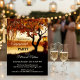 Elégante invitation de fiançailles avec un arbre d'automne coloré et une lanterne festive donnant sur un lac romantique. Le côté arrière présente un dégradé doré et bordeaux.