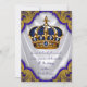 Fancy royal bleu et or prince d'anniversaire invitation à la fête d'anniversaire avec couronne bleu et or sur un bel arrière - plan blanc royal bleu et or satin tourbillon. Cette invitation à la fête d'anniversaire du prince bleu et or ornée de n'importe quel nombre est facilement customisée pour votre événement en ajoutant les détails de votre événement, le style de police, la taille et la couleur de police et le libellé.