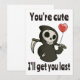 Drôle et adorable Faucheur avec un ballon en forme de cœur romantique dit « Tu es mignon, je t'aurai en dernier ». Parfait pour la Saint-Valentin ainsi que pour Halloween. Pour les enfants et pour les adultes.