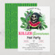 Invitation de fête au bord de la piscine pour l'été de la Faucheuse - Célébrez l'été avec la Faucheuse ! Cette invitation présente une Faucheuse drôle avec la classique cape noire et la faux en train de manger de la pastèque sur un fond de verdure tropicale luxuriante. Parfait pour une fête d'été de la Faucheuse ! Conçu pour les amateurs d'Halloween et les passionnés de films d'horreur. Avec une police vintage, grunge et en détresse, personnalisez ce modèle d'invitation de fête d'été modifiable avec vos propres détails d'événement. Au dos, vous trouverez un motif de peau de pastèque en vert foncé et clair. Disponible à la commande sous forme d'invitations imprimées ou de téléchargement numérique instantané que vous pouvez envoyer par e-mail, SMS ou sur les réseaux sociaux.