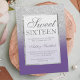 Une douche à parties scintillant en faux argent moderne, assez chic et élégante ombre avec bloc violet violet violet violet doux invitation à la fête de 16 ans avec et élégant cadre argent Parfait pour un Sweet sixteen princesse.