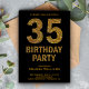 Éblouissez vos invités avec cette séduisante invitation de fête de 35e anniversaire avec un texte en parties scintillant dorée et audacieux contre un arrière - plan noir. Ajoutez simplement les détails de votre événement sur ce modèle facile à utiliser pour en faire une invitation unique. Retournez la carte pour révéler une fausse texture de parties scintillant d'or au dos de la carte.