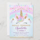 Faux Gold Unicorn Bow Rainbow Birthday Invitation mignonne unicorn invitation d'anniversaire avec un peu de bling, des coeurs, des nuages, des étoiles et un arrière - plan arc-en-ciel. Cette invitation magique d'anniversaire de la licorne de fille de célébration peut être utilisée pour n'importe quel âge.