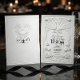This design features a symmetrical illustration of two graceful swans facing inward, their curved necks intertwining to form a subtle heart shape, symbolizing eternal romance. The artwork is framed by an ornate border of roses and scrollwork in a monochrome palette of stark black against a soft ivory background. The typography blends formal serif fonts with flowing calligraphy for a timeless aesthetic.This is a flat printed image with a simulated raised texture effect, not actual embossed material or letterpress indentation