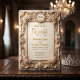 Invitation Faux or crest floral rococo embossé doré