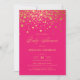 Invitez vos invités à votre événement avec cette invitation personnalisable pour baby shower. Elle présente des confettis en faux papier doré sur un fond rose magenta. Personnalisez-la en ajoutant vos détails. Cette invitation magenta est parfaite pour n'importe quel thème ou saison de shower. Veuillez noter qu'il n'y aura pas de véritable papier doré dans l'invitation.
