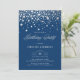 Invitation Faux Silver Foil Confetti Dots Marine Bleu Anniver