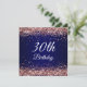 Une invitation glamour monogrammée de 30ème anniversaire pour elle. Parties scintillant brillante en or rose contre un arrière - plan bleu marine. La calligraphie et le style de police peuvent être customisés. Tous les éléments brillants et brillants de ce design girly moderne sont des graphismes numériques.