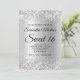 Une invitation glamour sweet sixteen 16ème anniversaire pour elle. Faux parties scintillant argentée brillante avec étincelles contre une image graphique sombre et argentée en satin clair. Tous les éléments brillants et brillants de ce design girly moderne sont des graphismes numériques. Customisez le filtre sur le dégradé graphique du système.