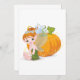 Une jolie fée assise à côté d'un citrouille. Cette conception semble vraiment efficace sur ces invitations